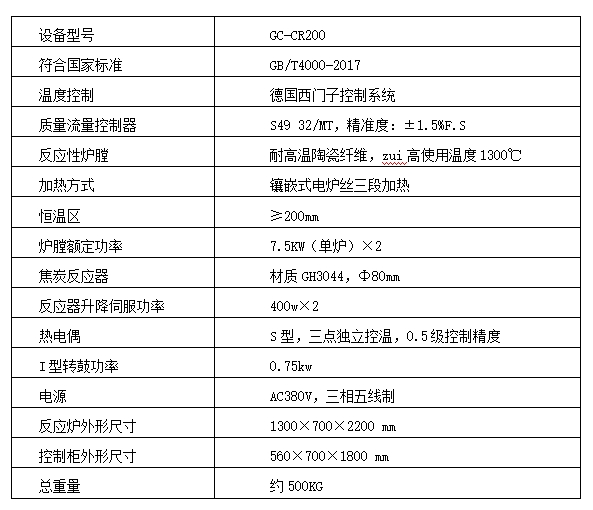 3、焦炭(tan)反應器材質(zhì)爲耐高溫合(hé)金鋼GH3044,内徑Φ80mm。
