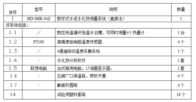 标準的(de)4通道數字式直接(jie)法水泥水化熱測(ce)量系統系統💋組成(chéng)如🈚下表: